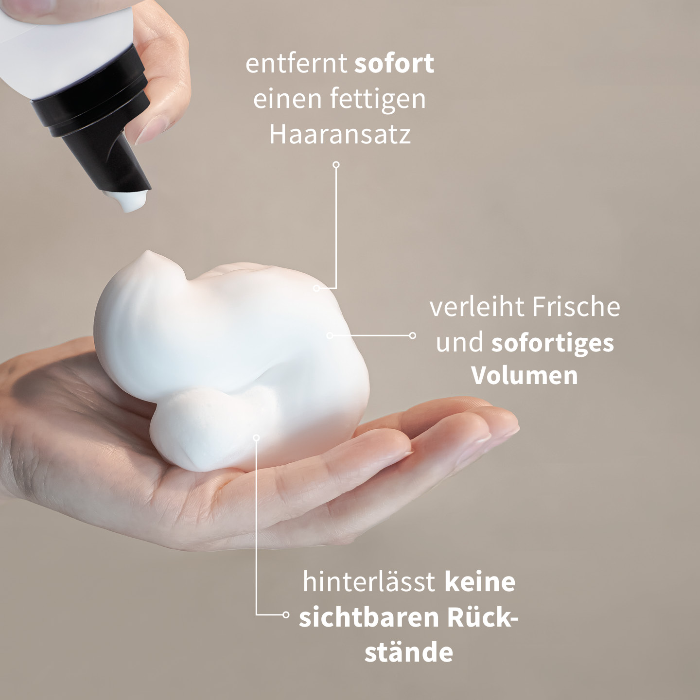 Sausas šampūnas putų pavidalu – moderni alternatyva klasikiniams purškiamiems sausiems šampūnams. Lengvos, greitai susigeriančios putos efektyviai sugeria riebalų perteklių nuo galvos odos, suteikia plaukams švaros, gaivumo ir apimties pojūtį be vandens. Specialios formulės dėka priemonė nepalieka baltų apnašų, todėl tinka visų atspalvių plaukams. Putos lengvai paskirstomos, neapsunkina plaukų ir leidžia tiksliai kontroliuoti produkto kiekį. Idealiai tinka greitam plaukų atnaujinimui tarp plovimų, kelionėse ar kai trūksta laiko.